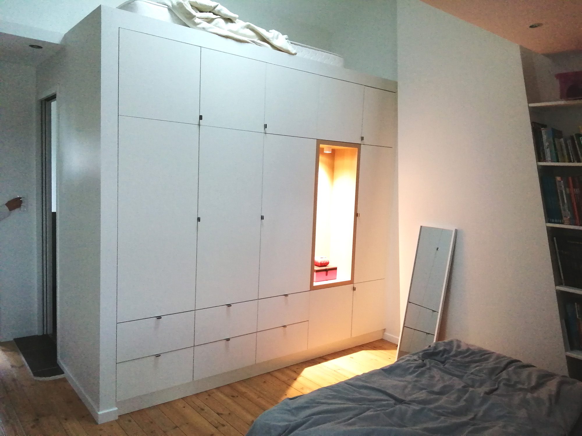 Dans cette maison ancienne cohabitaient, pour distribuer les étages, deux escaliers distinctes alimentant chacun un côté de la maison. Les propriétaires de la maison souhaitaient optimiser les circulations et créer des rangements du rez-de-chaussée aux combles. Ils souhaitaient également pouvoir disposer d’un espace de télétravail dans l’entrée.
